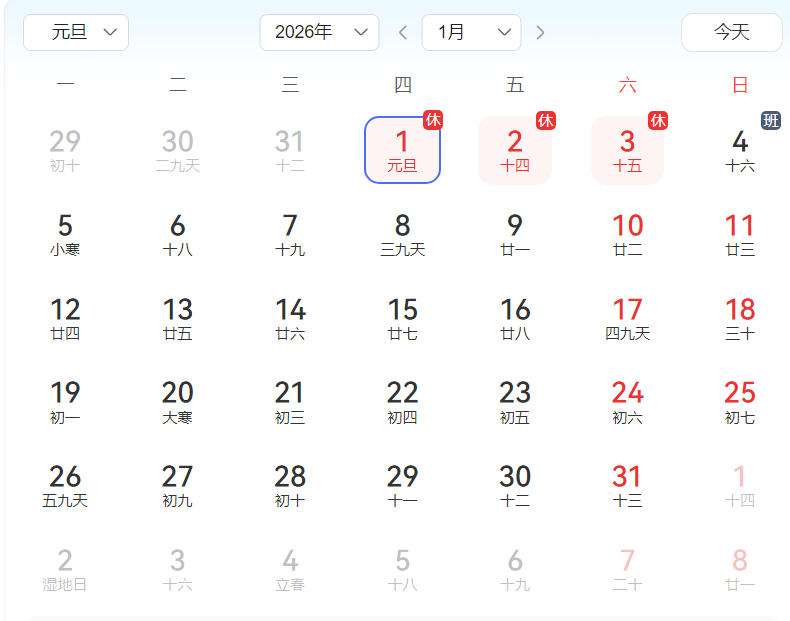 2026年元旦:1月1日(周四)至3日(周六)放假调休,共3天。1月4日(周日)上班。元旦期间想咨询报名学车的朋友们可直接拨打电话:021-51619852,15317285616,祝各位节日愉快!